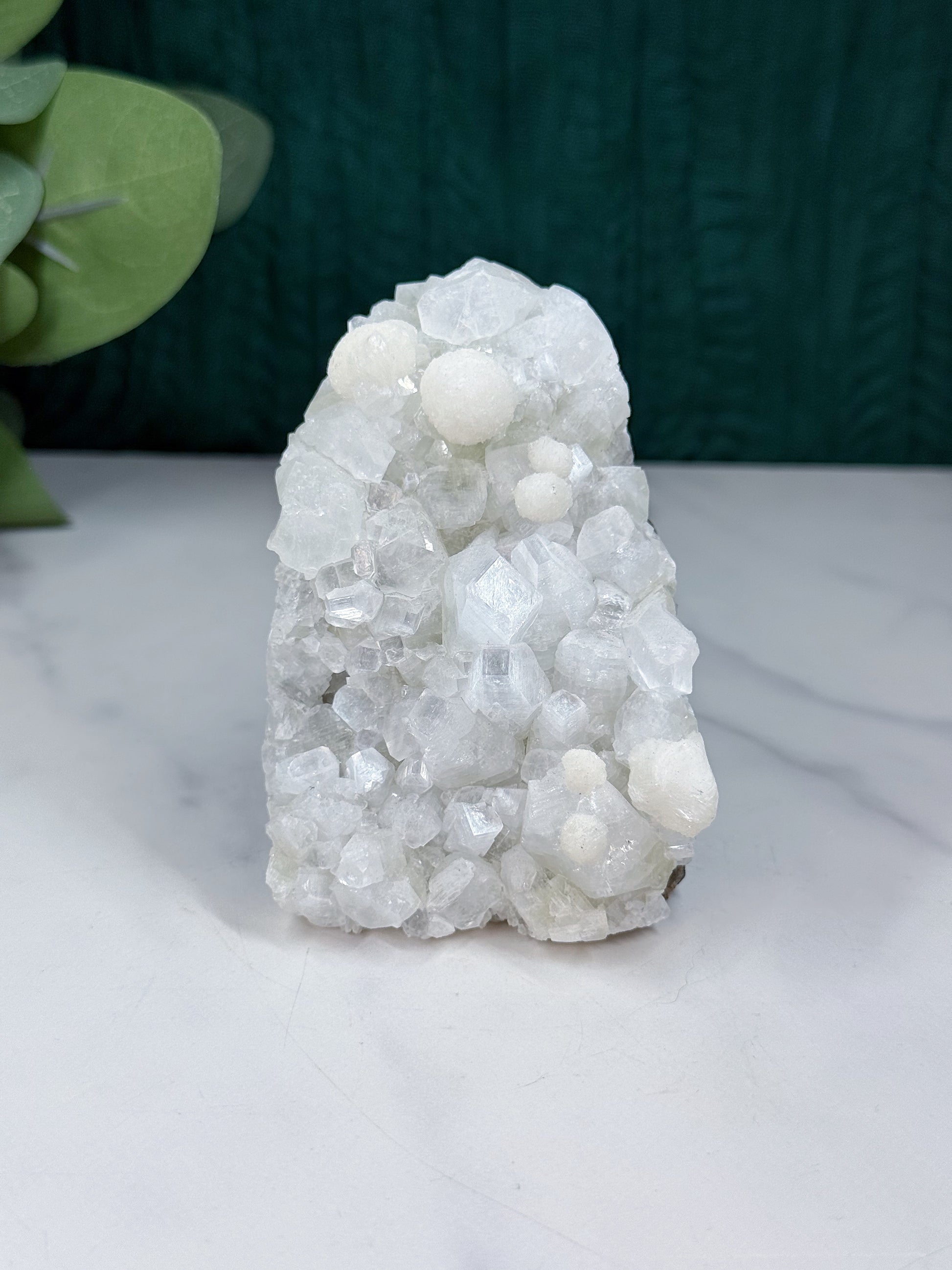 Gorgeous diamond apoph cutbase with perfect gyrolite cubes.