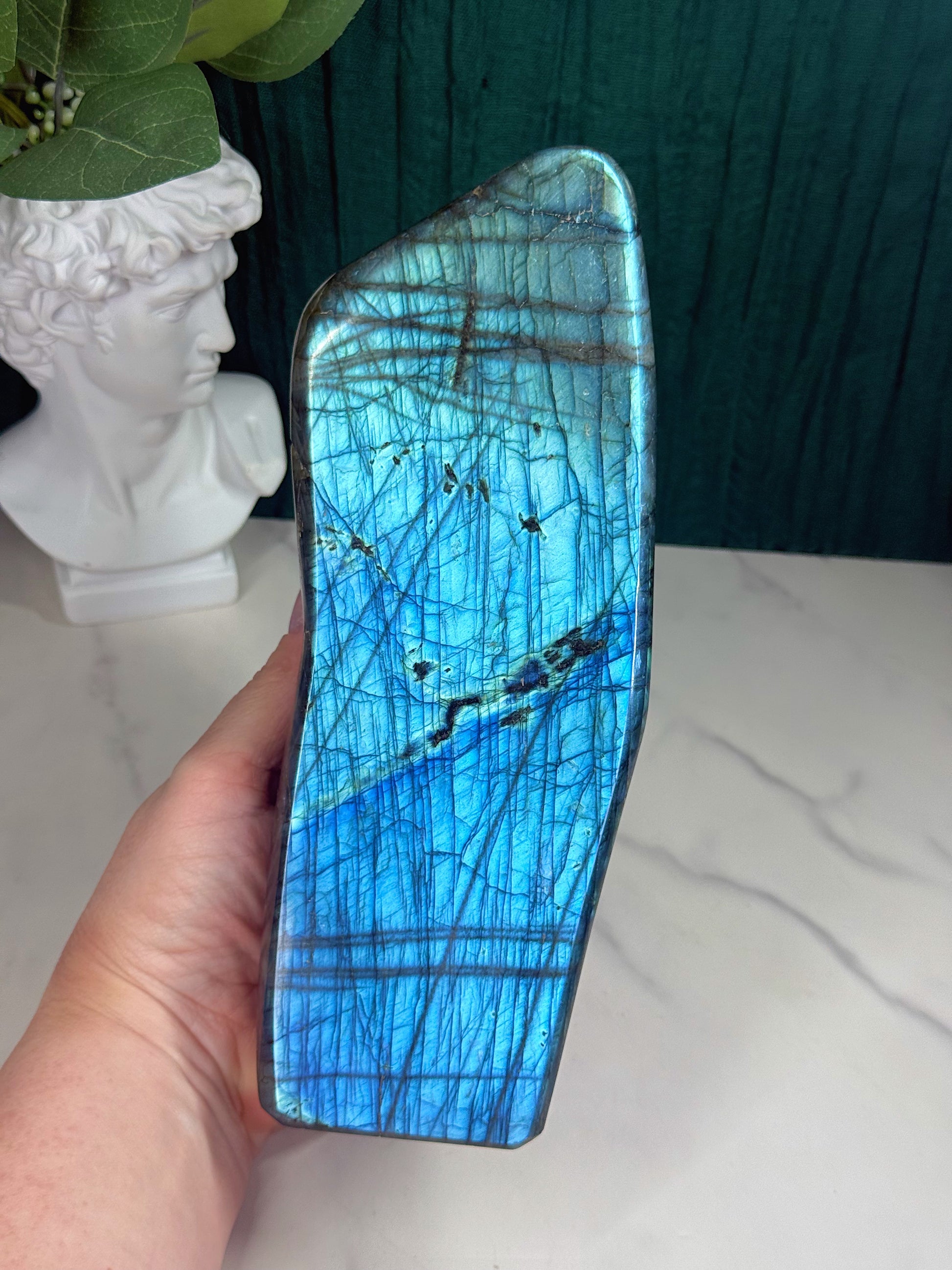 You know how some labradorites make you work for the flash? Not this baddie, her flash can be seen from space.