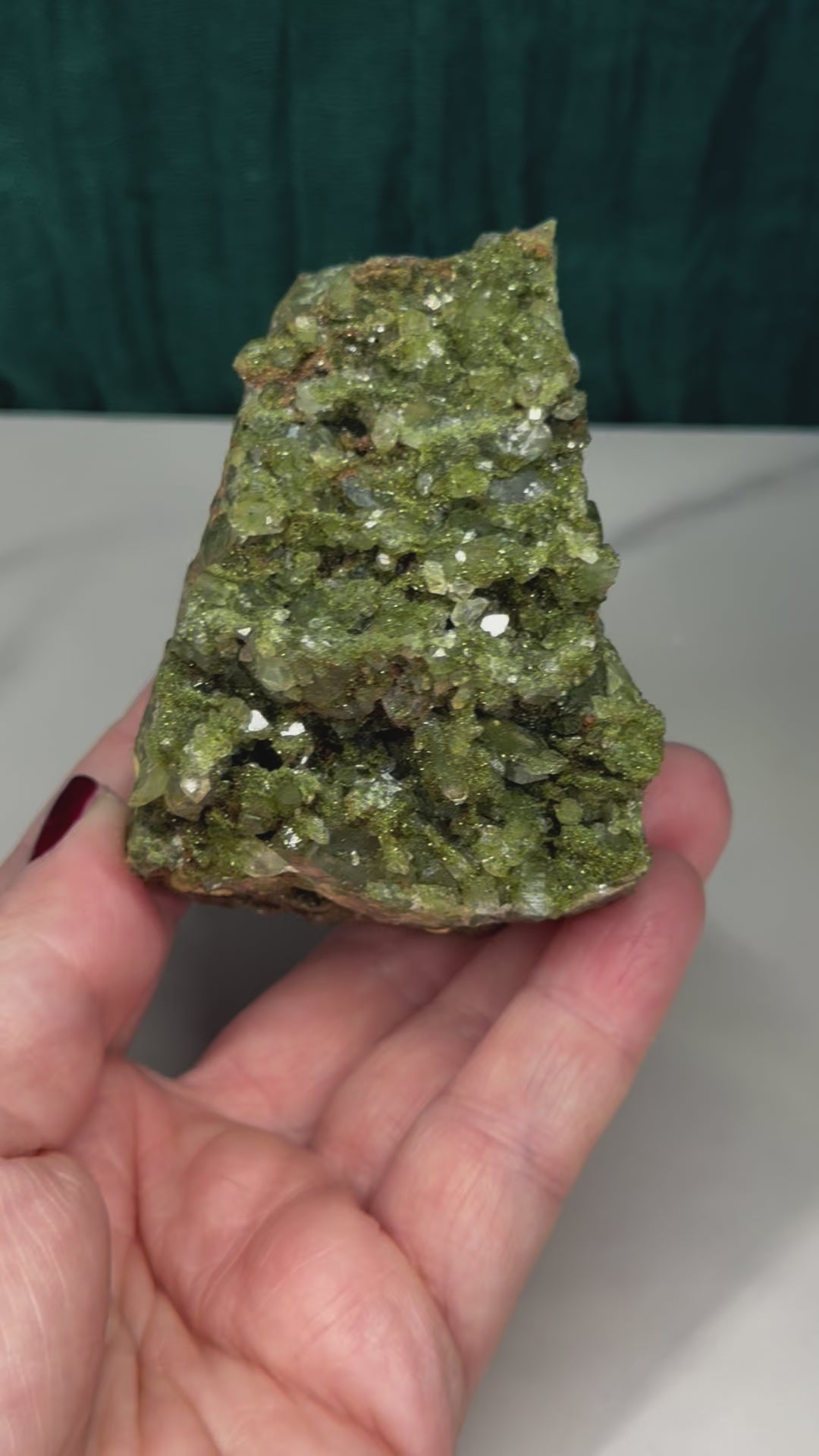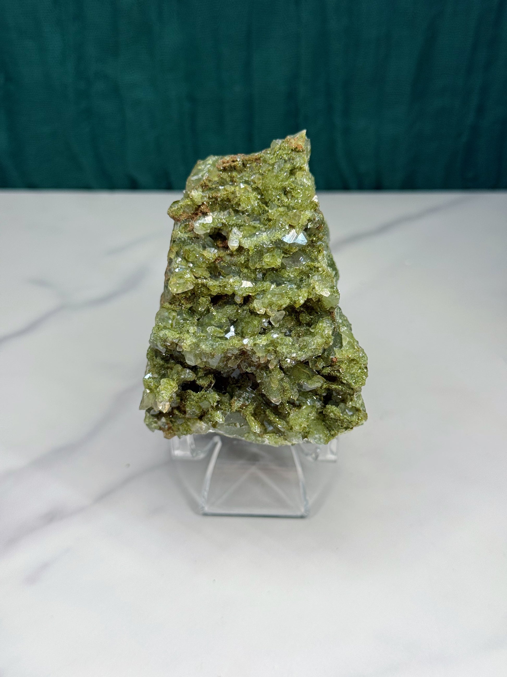 Lovely fairy forest epidote with quartz, enough sparkles to light any room!