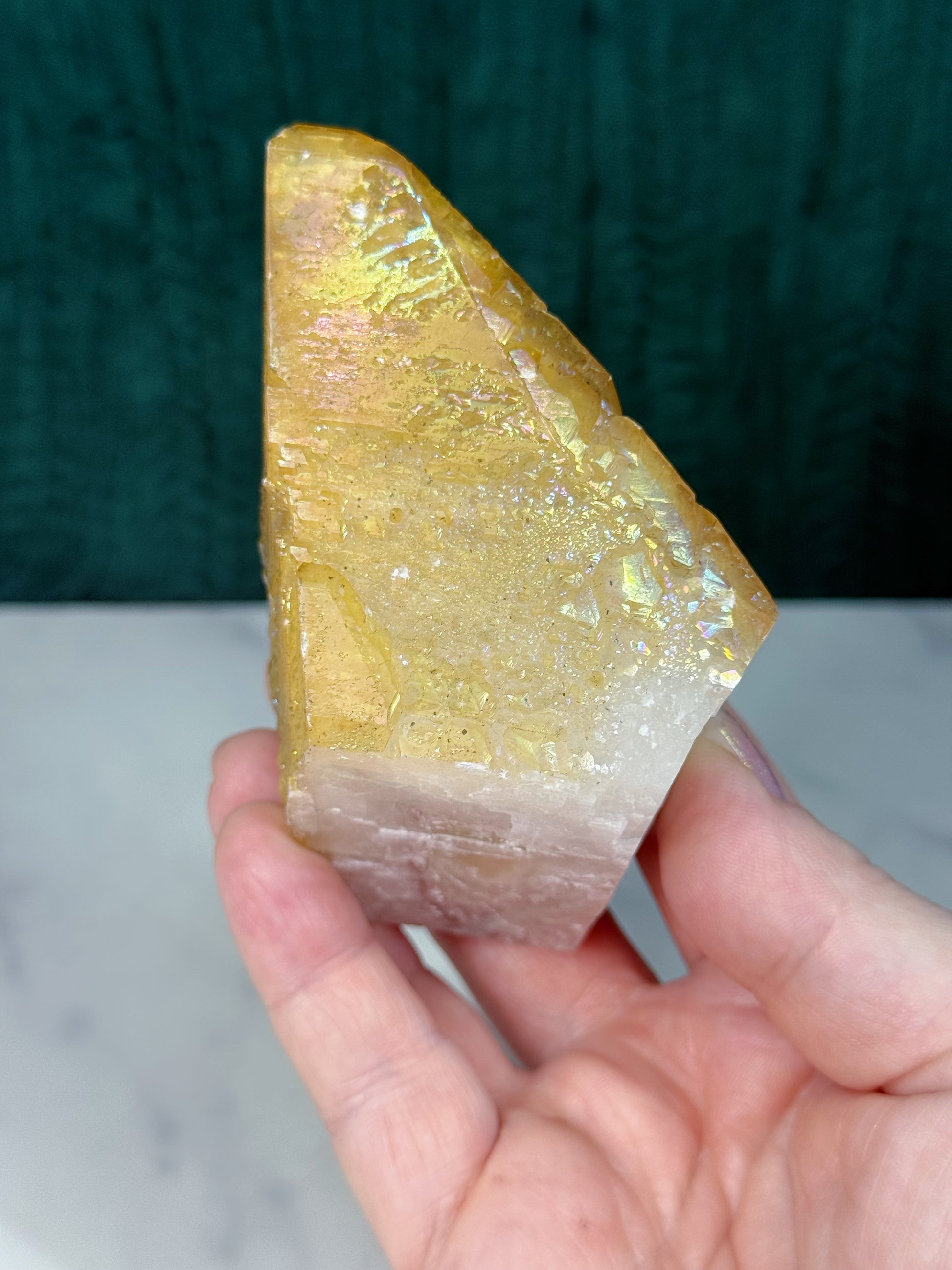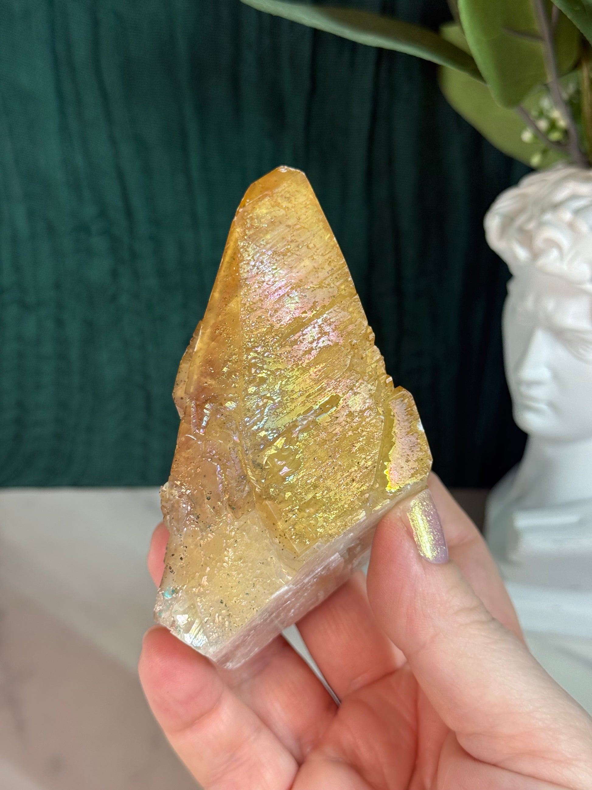 Stunning, large dogtooth calcite specimen. Amazing iridescence! So many rainbows.