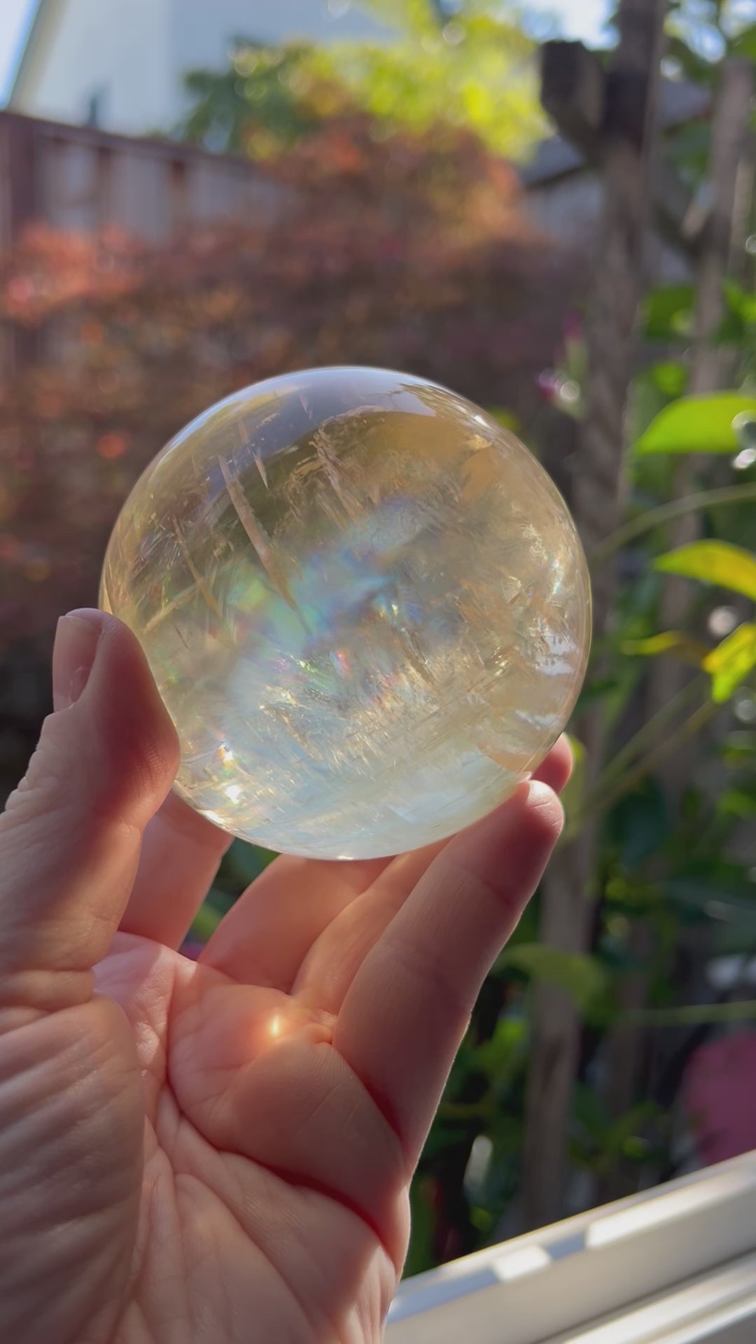HQ Optical Honey Calcite sphere. Amazing clarity and rainbows!