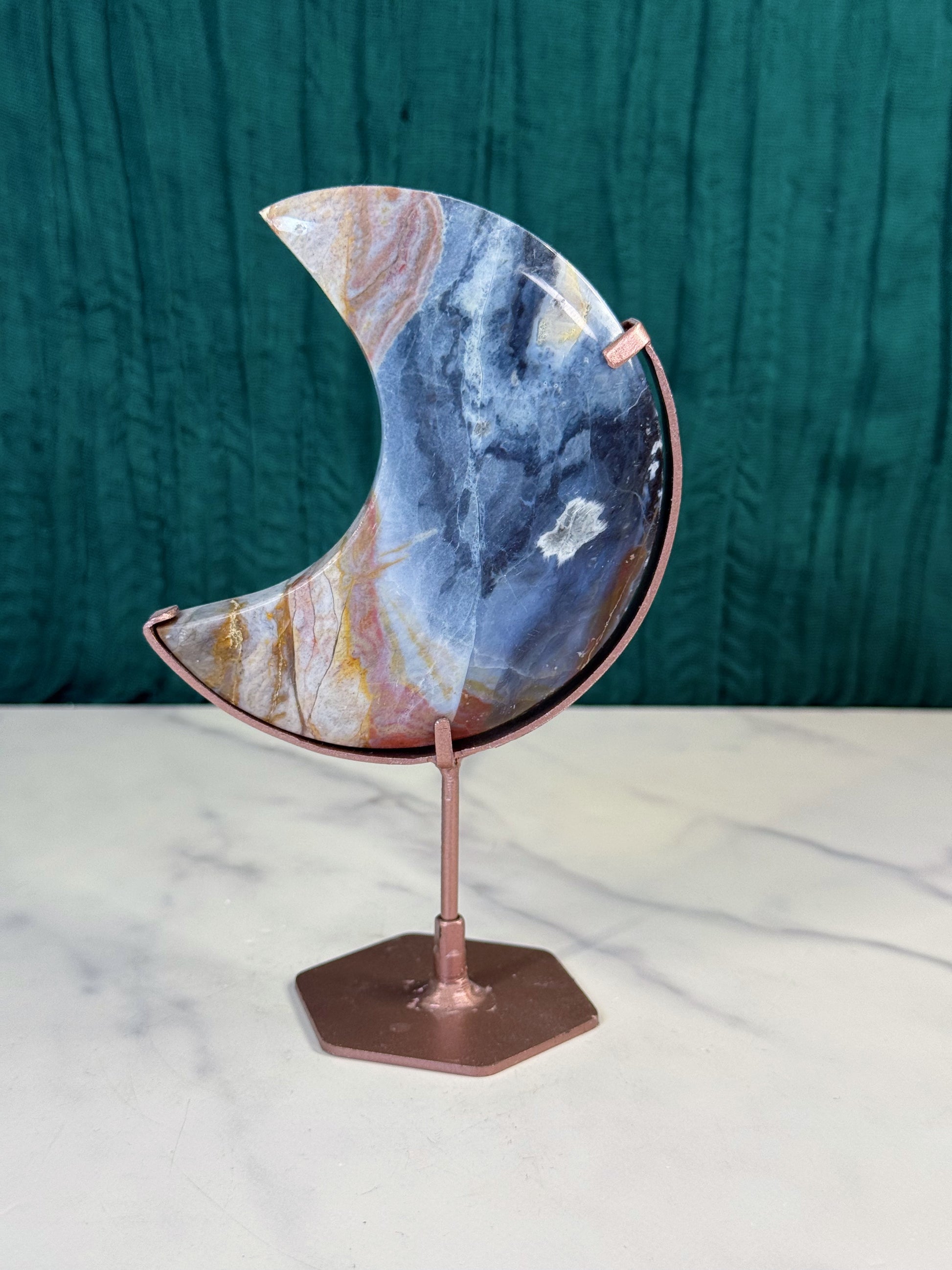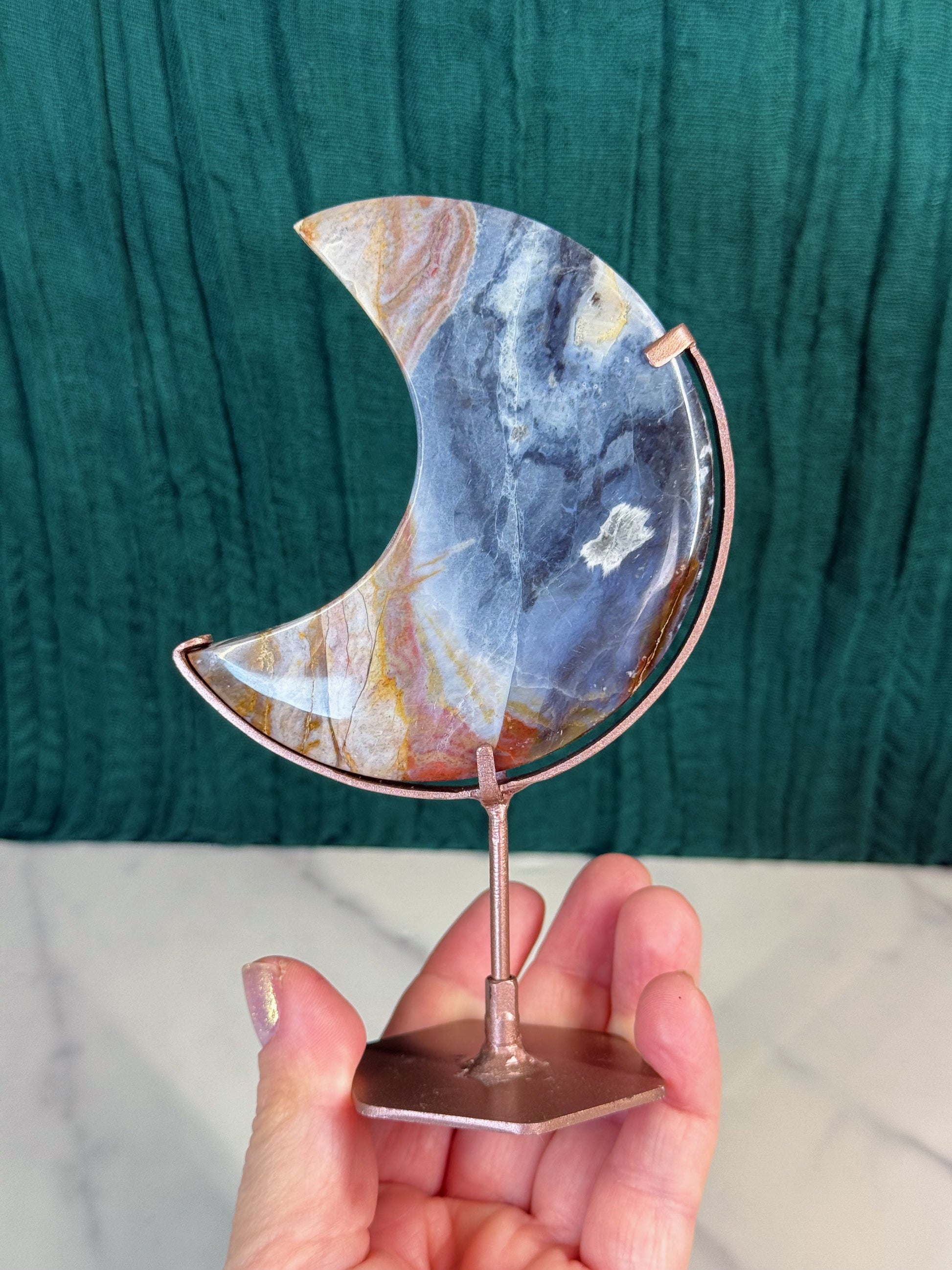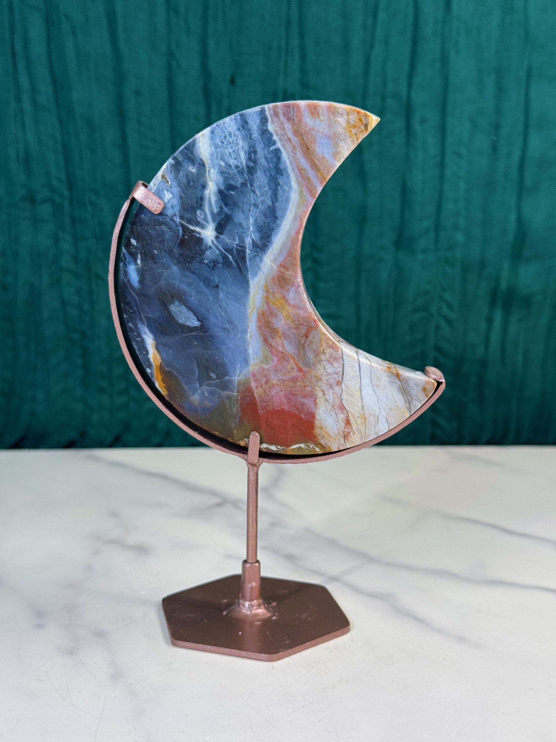 Vibrant RJ moon on a rose gold stand. From Indonesia.
