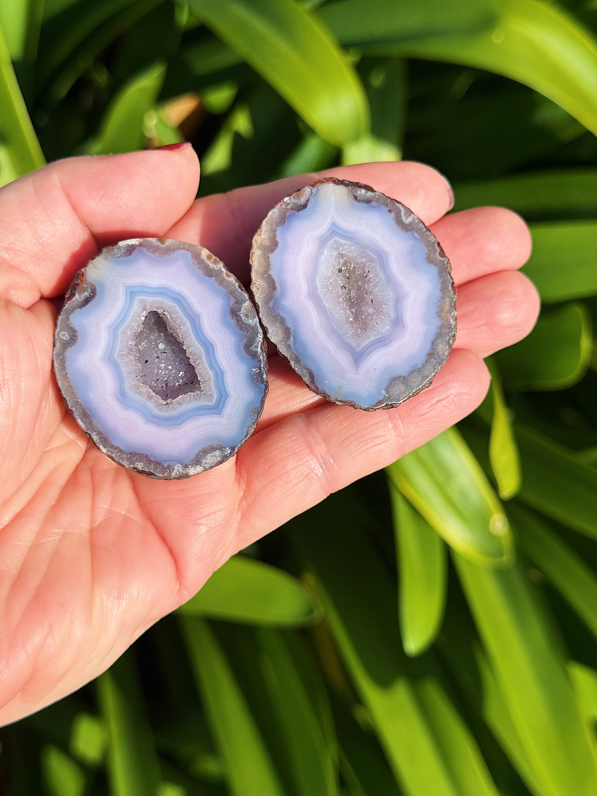Lilac purple Zhangou Agate pair! Gorgeous with beautiful druze.